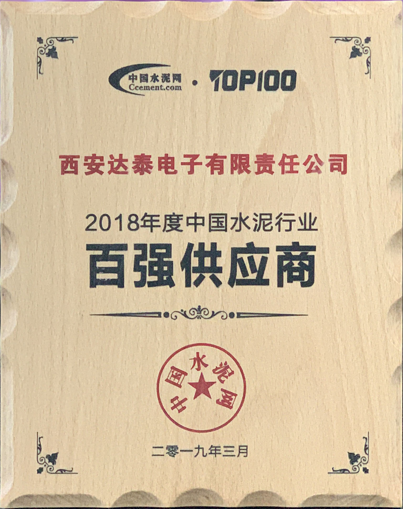 西安達(dá)泰電子有限責(zé)任公司連續(xù)兩年被評(píng)為水泥行業(yè)百?gòu)?qiáng)供應(yīng)商